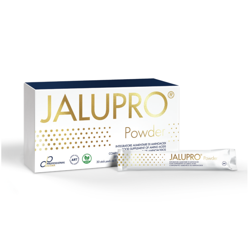 Jalupro Powder — расширенная аминокислотная формула с гидроксипролином, витаминами и микроэлементами для поддержки синтеза и стабилизации коллагеновых волокон. Порошковая форма обеспечивает системное действие при признаках деградации коллагена, способствуя восстановлению соединительной ткани.